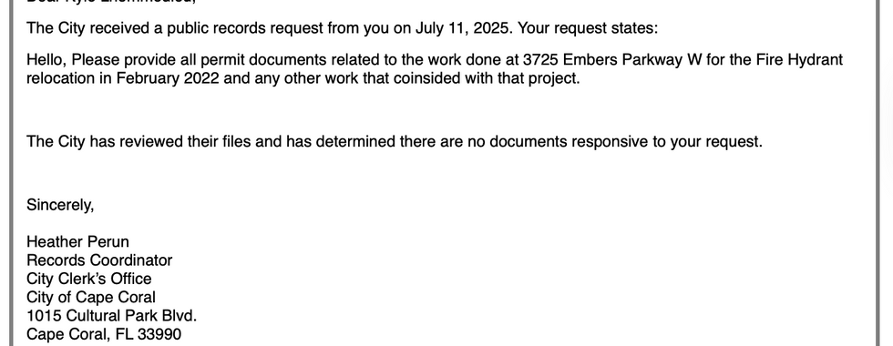 Even more troubling, the same employee appears to have processed both requests, as their name was clearly listed in the correspondence for each. This raises serious questions about the city's record-keeping, transparency, and whether these excessive fees are being used to discourage public access to information.